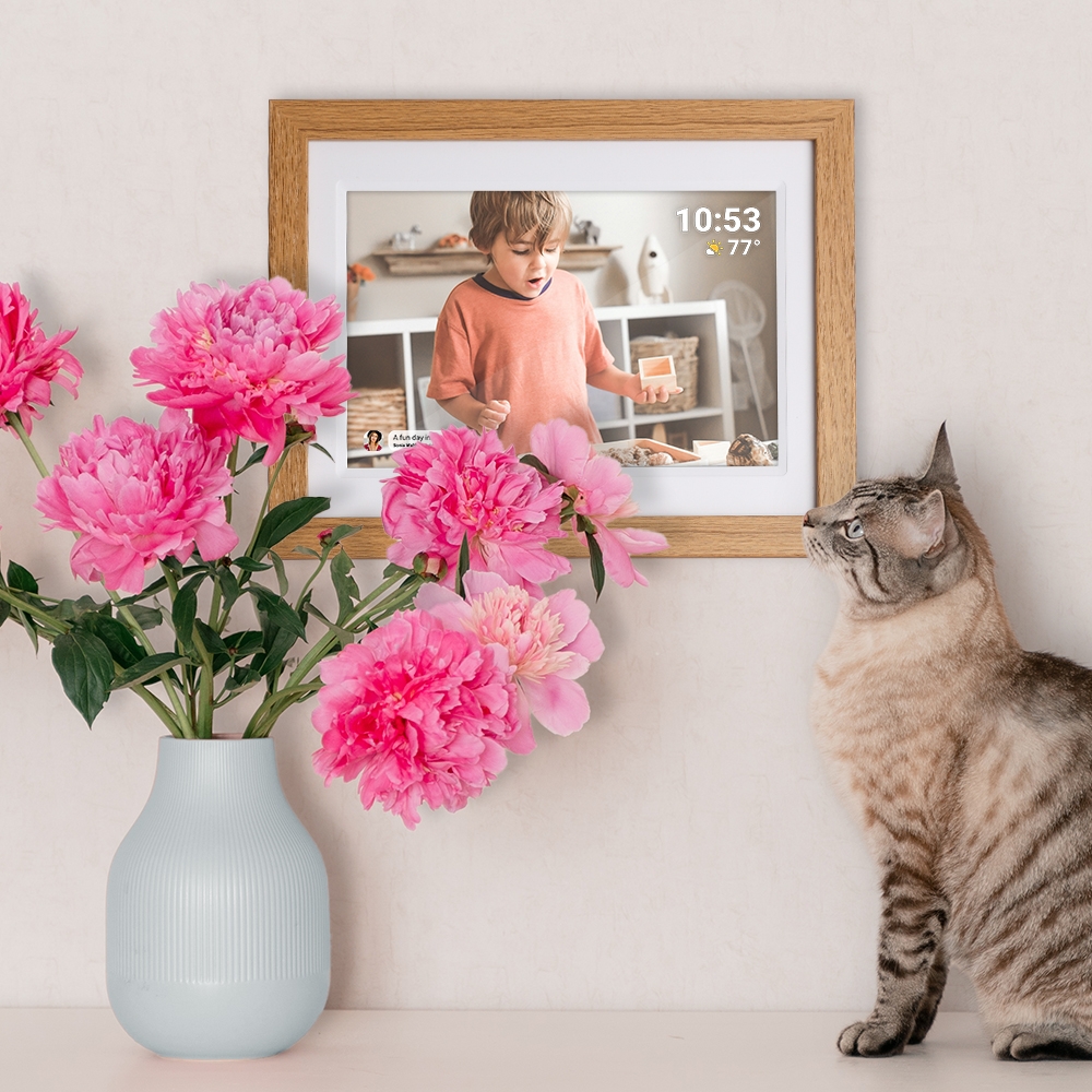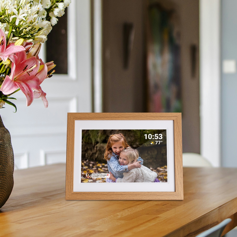 Die Inhalte werden direkt auf dem Bilderrahmen angezeigt – ohne zusätzliche Geräte, ohne komplizierte Zwischenschritte. Neue Fotos erscheinen automatisch und sorgen immer wieder für kleine, schöne Momente im Alltag.